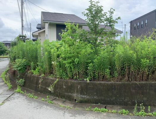 南アルプス市のお客様から「庭の草が一面に伸びてしまった。木も大きくなってきたので整えてほしい」とご相談をいただきました。